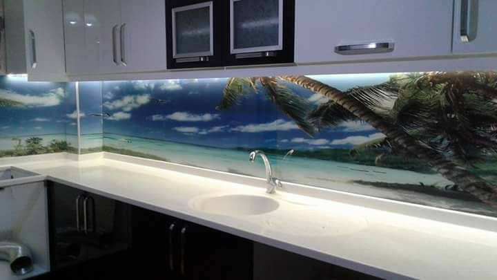 Tezgah Arası Cam panel mutfağınıza stil ve modernlik katacak bir uygulamadır. Kadınların mutfakta uzun süreler geçirmesi ve mutfakların daha şık ve modern olmasını istemesiyle ortaya çıkmıştır. 3D UHD tezgah arası cam çalışmalarımız ile, mutfak arası cam paneller yerini dahada farklı ve şık bir boyuta taşımaktadır. Tezgah arası camlar mutfağınızda istenmeyen görüntüler, ağır temizlik gerektirecek durumların oluşmasına sebep olmaz, tam tersine şık görünen bir mutfağa sahip olursunuz.